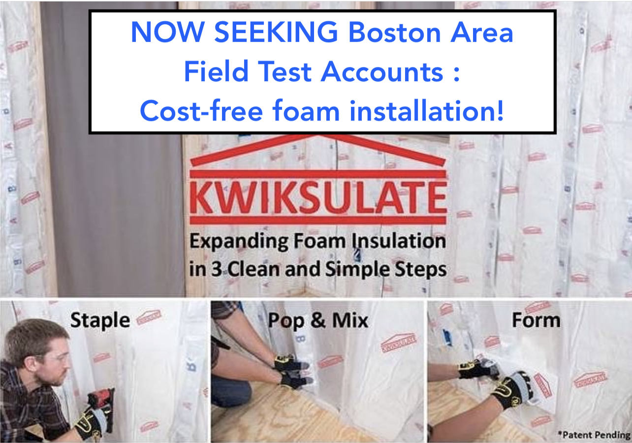 We are now seeking New England area accounts for cost-free field testing. If you are based in New England and have a project you would like to insulate using KWIKSULATE, please contact us for more information.